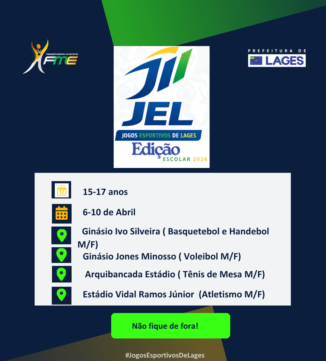 06/04/2026 | 16:45 Jogos Esportivos de Lages (edição escolar) reúnem mais de 1,2 mil atletas na etapa de 15 a 17 anos